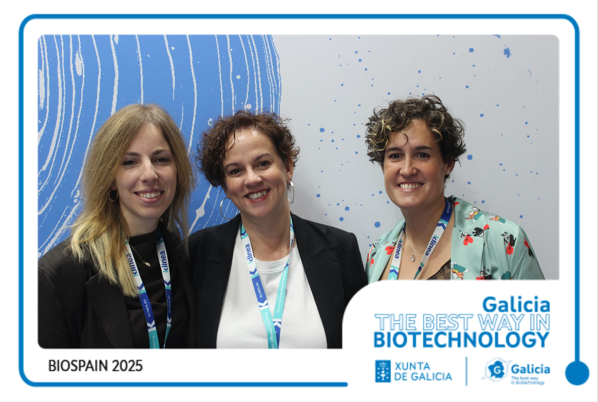 Santiago de Compostela, 10 de octubre de 2025.- El IDIS participó en la décimo segunda edición de BioSpain, una de las principales citas del sector biotecnológico europeo, que se celebró del 7 a 9 de octubre en Barcelona. El Instituto forma parte de la delegación gallega liderada por la Xunta de Galicia, que tiene el objetivo de establecer alianzas estratégicas, mostrar el potencial innovador del sector y generar nuevas oportunidades de colaboración e inversión. En representación del IDIS asistieron las responsables del departamento de Transferencia e Innovación, Mabel Sampedro, Miriam Cebey y Laura López, junto con personal investigador.