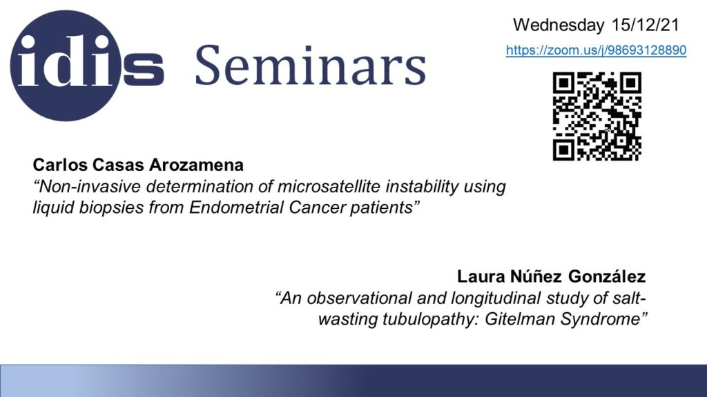 "Non-invasive determination of microsatellite instability using liquid biopsies from Endometrial Cancer patients" by Carlos Casas Arozamena "An observational and longitudinal study of salt-wasting tubulopathy: Gitelman Syndrome" by Laura Núñez González